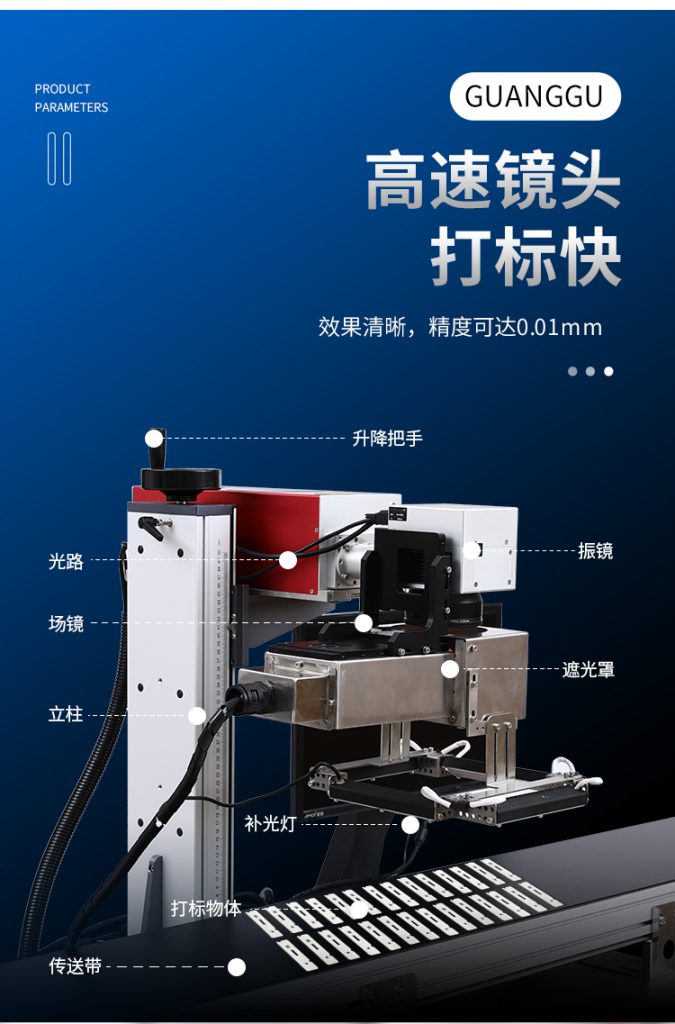 打標完成后門會自動打開,設備配置三紅光對焦系統(tǒng),精確測量目標和激光焦點距離