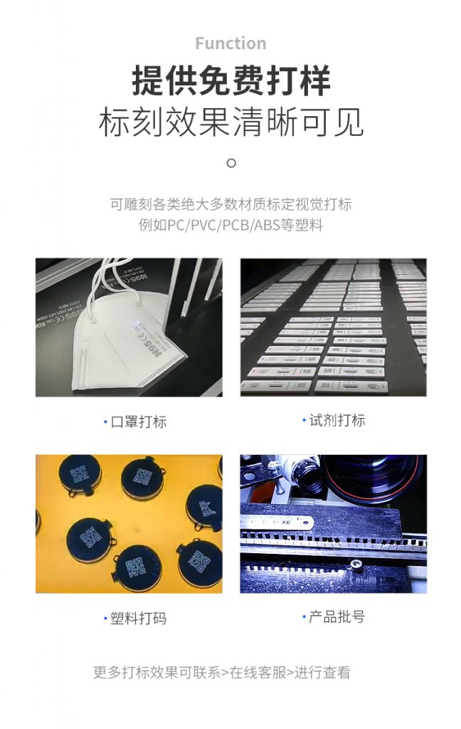 柔性PCB板打標、劃片;硅晶圓片微孔、盲孔加工;LCD液晶玻璃、玻璃器皿表面、金屬表面鍍層、塑膠按鍵、電子原件、通訊器材、建筑材料等多個領域。
